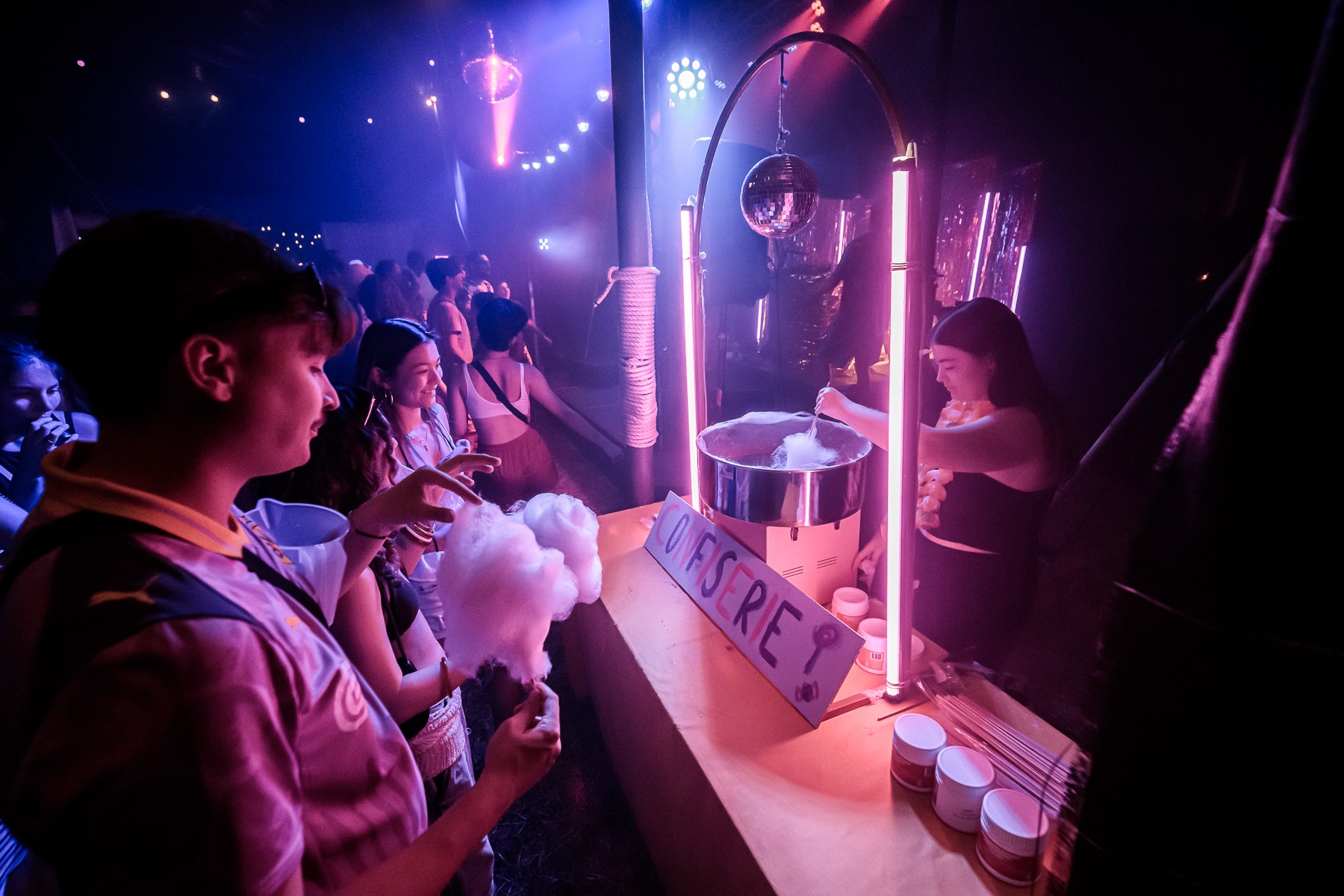 Un chapiteau 400 places, une disco-mobile, une boule à facettes, une confiserie et un kiosque à tatouages Malabar©, voilà enfin réunis les ingrédients d’une boum délicieusement déjantée. Signant ici l’acte de naissance d’un objet festif assez contagieux pour être, très bientôt, dupliqué et exporté, nous nous emparons des commandes de la boum de nos (de vos?) rêves: tantôt nostalgique et révérencieuse, tantôt moderniste et transgressive ! Alors, plutôt team karaoké, team quart d’heure américain ou team barbe à papa ?