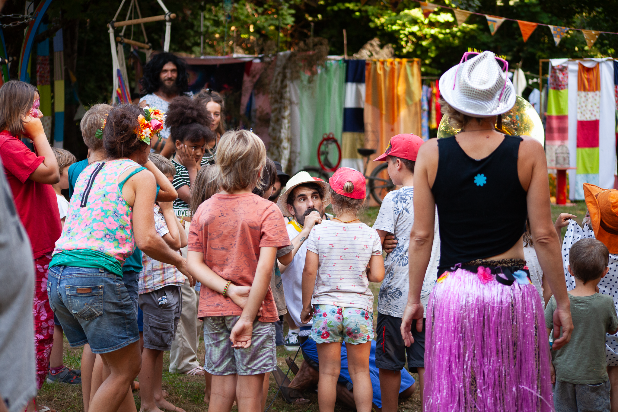 Installés au Puy Basset, au cœur de la dynamique quotidienne de ce lieu d'Accueil Paysan, nous prenons le pouls de la vie locale, pour mieux imaginer des dispositifs participatifs, voués à co-concevoir le programme de la kermesse à venir. Ainsi, les tablées partagées dans la semaine inspirent la playliste du karaoké post-it (un karaoké sans écran!), les sorties dans les villages voisins motivent la création d’une tombolove contributive et les veillées autour du feu font émerger l’envie irrésistible d’organiser une soirée chamallow-grillés pour les petit.e.s et les grand.e.s.
