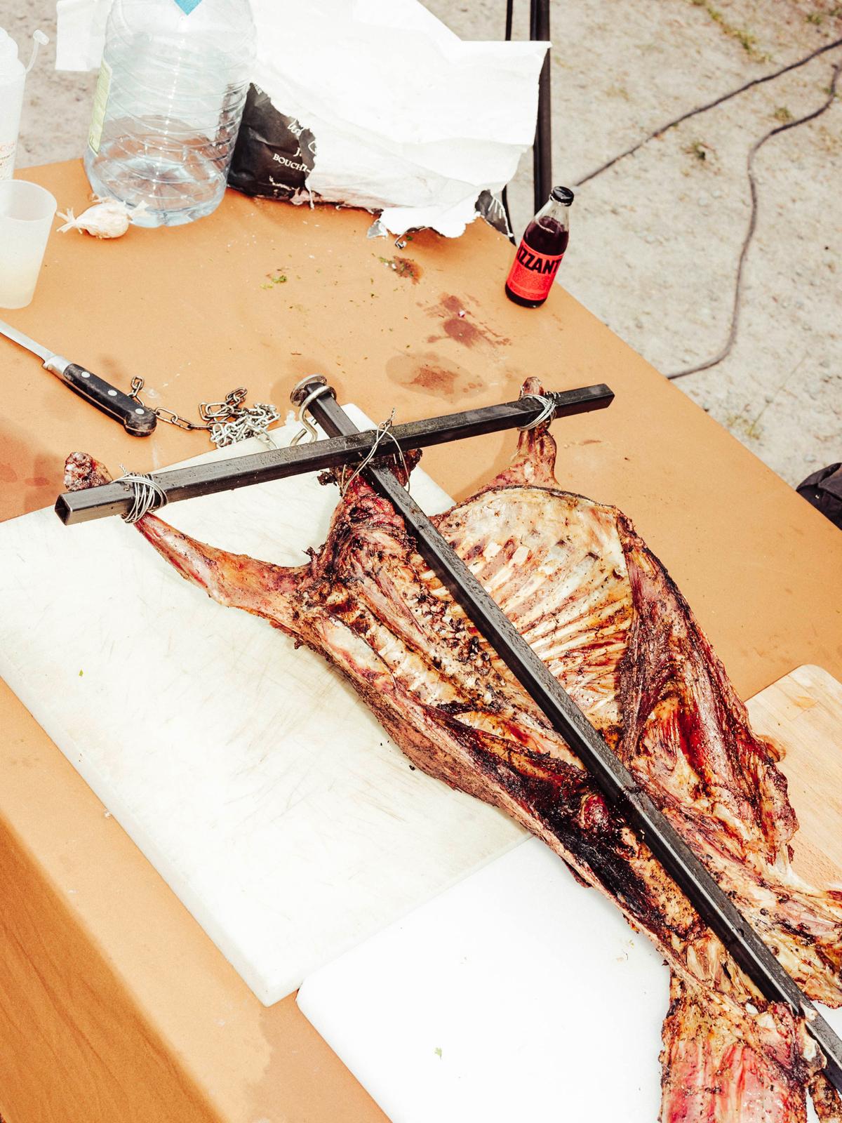 Brasier populaire, cantine ardente et scène volcanique, cette architecture éphémère et frugale rend hommage aux fêtes de villages basques et à celles et ceux qui les portent. Elle convoquant des gestes centenaires (tel que cuire l’agneau à même le sol ou confectionner collectivement la piperade), tout en modernisant les traditions locales à grands renforts de pop-culture. Ce chapiteau sans toile, fait d’acier, de son, de lumière et de feu devient, le temps d’un weekend, un spot unique en son genre, un point de convergence autour duquel chacun.e est invité à manger, à chanter, à danser, mais surtout à s’aimer.