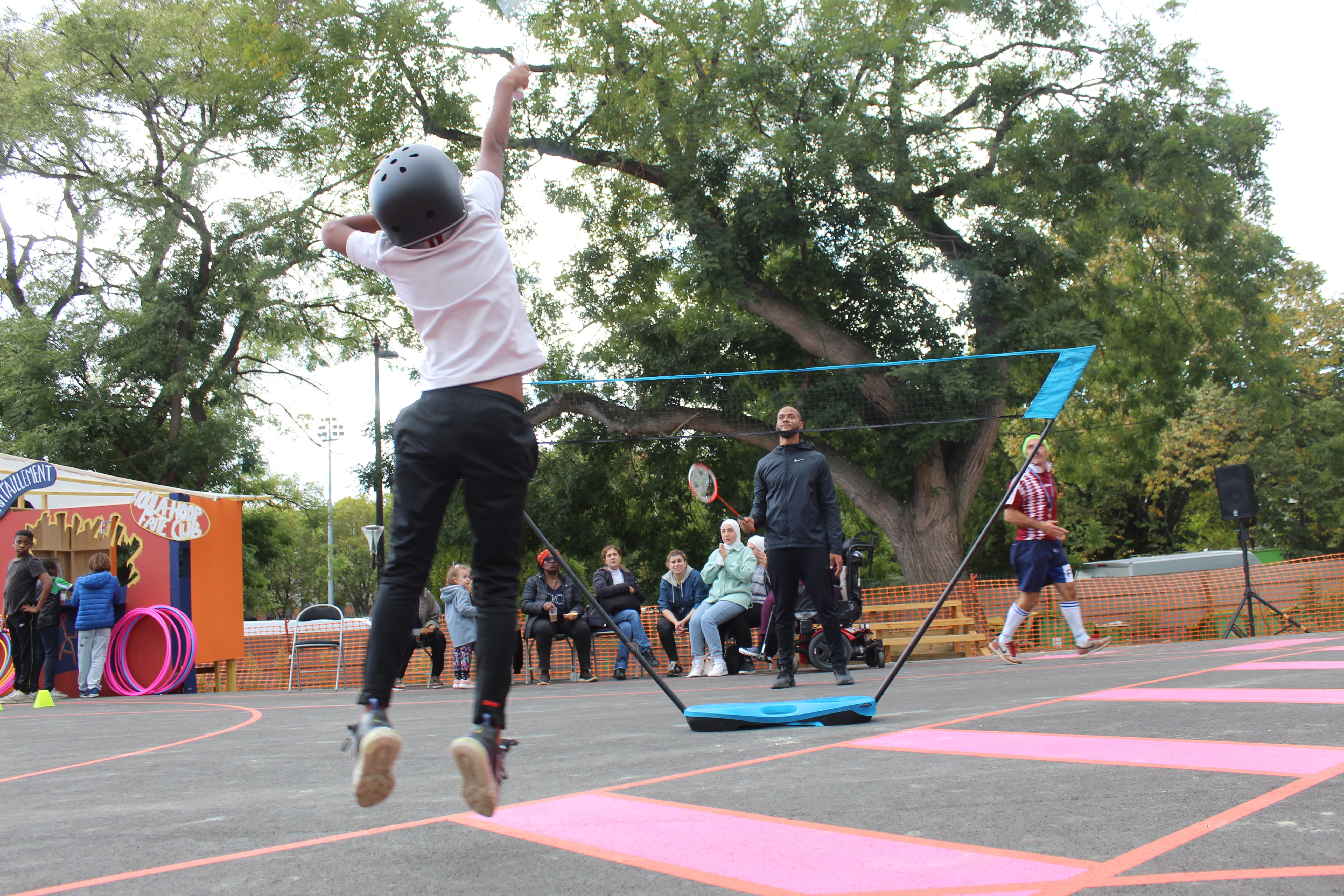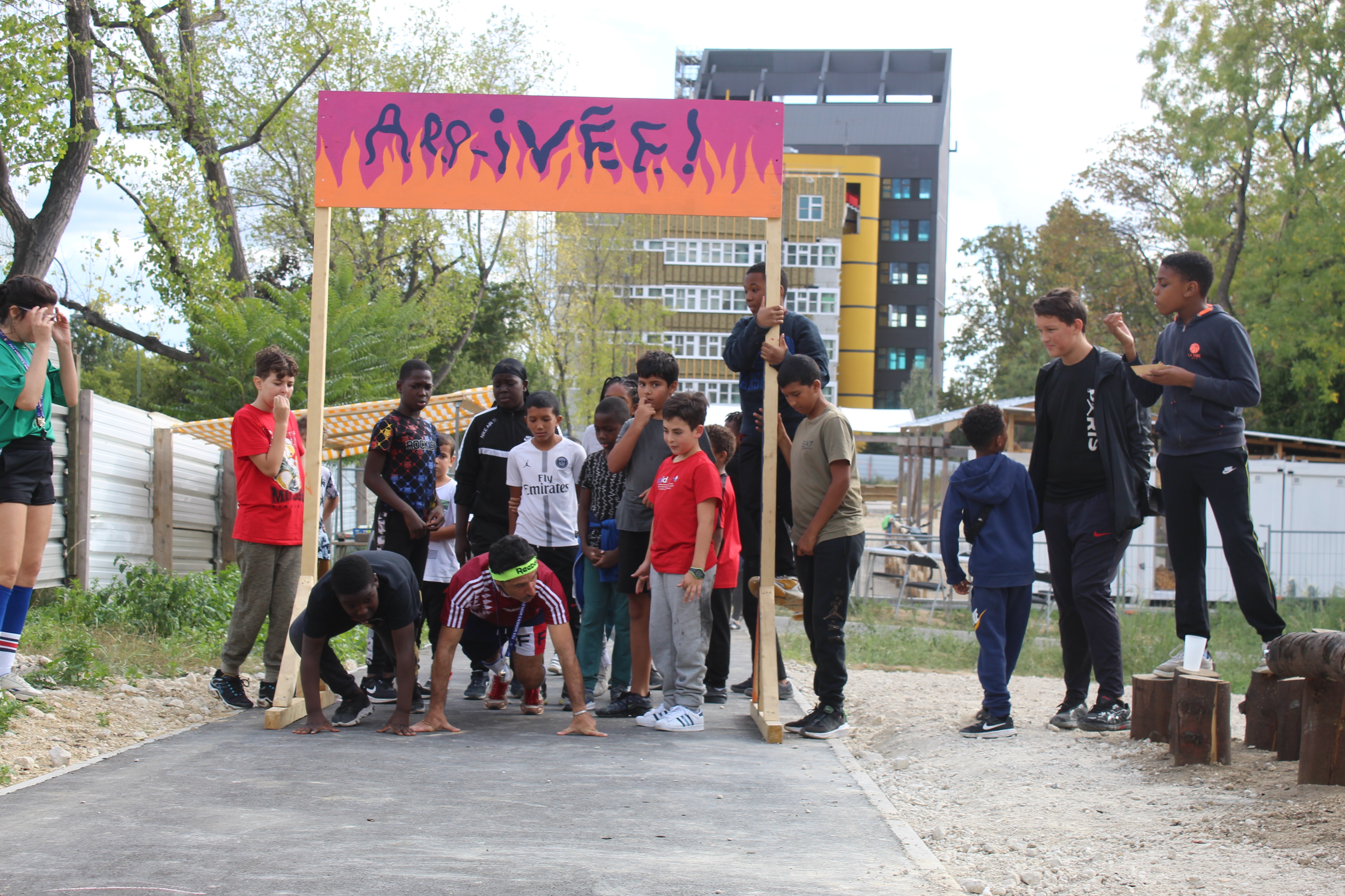 À l’invitation de Yes We Camp, sur une friche urbaine en bord de périphérique (co-gérée par La Belle Friche et Les Compagnons Bâtisseurs) nous déployons - deux saisons consécutives - une narration participative autour du sport et de la fête. Entre réécriture des disciplines olympiques, animations originales et réappropriation des enjeux de la compétition, nous invitons les familles du quartier à de nombreuses permanences conviviales mêlant activités sportives, banquets, happenings urbains et veillées musicales. Pour creuser la frontière entre Jeux Olympiques et manifestation culturelle nous entre croisons l'énergie du karaoké et celle du 100 mètres haies, l’art du trampoline et celui du Hula-hoop, les odeurs épicées émanant des couscoussièrs à celle des roues de vélo dérapant sur le bitume.